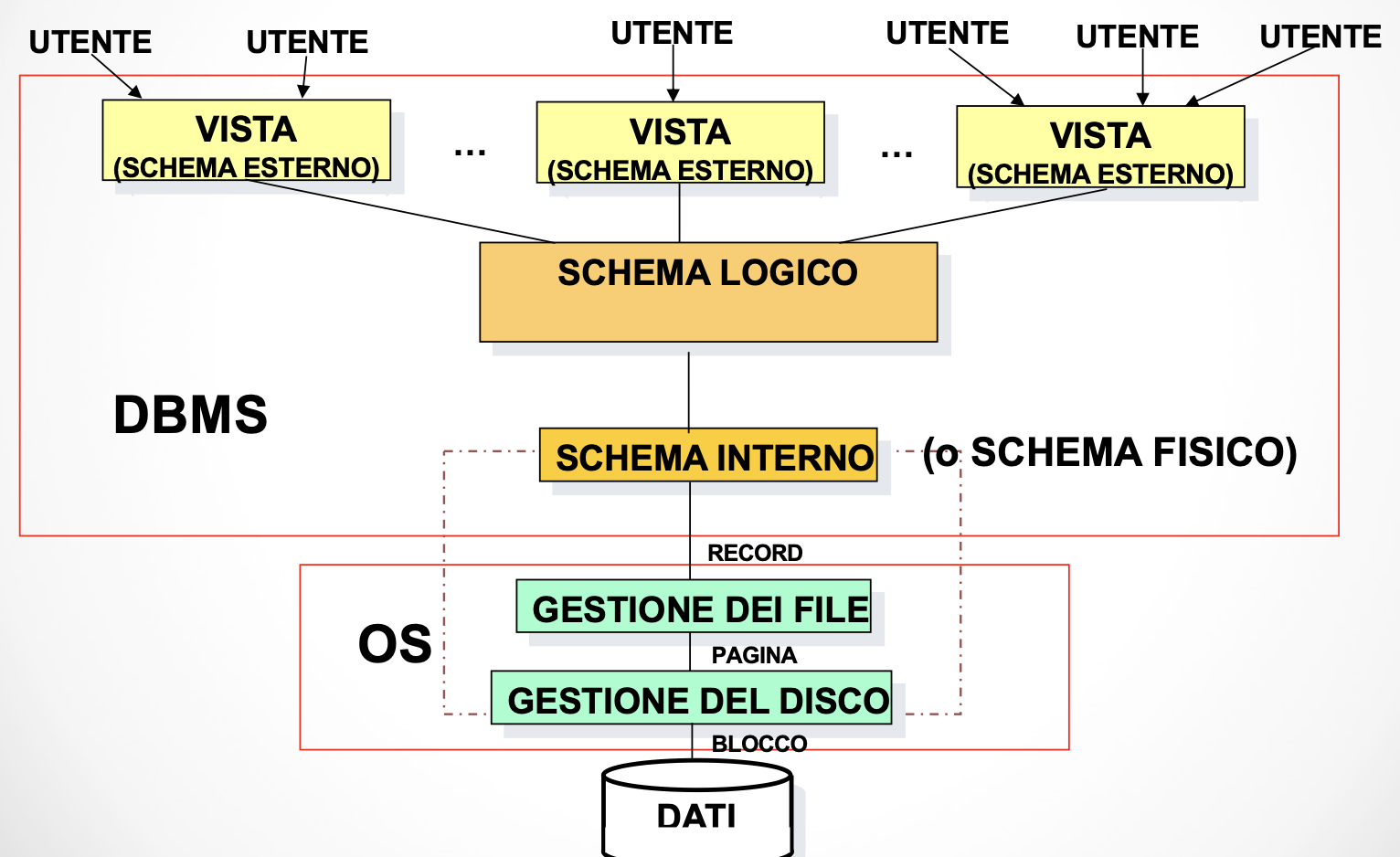 Schema fisico: rappresentazione dello schema logico per mezzo di strutture fisiche di memorizzazione.